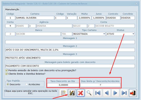 ALTERE A DATA CONFORME NECESSÁRIO E A TAXA DE DESCONTO AO DIA E CLIQUE EM SALVAR: