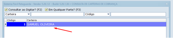 LOCALIZE A CARTEIRA DE COBRANÇA.
