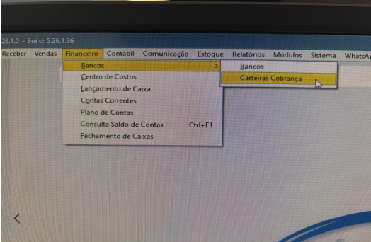 FINANCEIRO > BANCOS > CARTEIRAS COBRANÇA