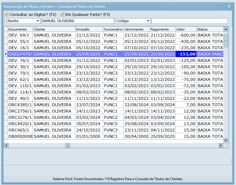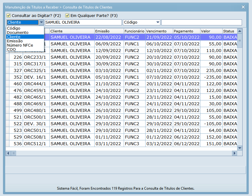 MUDE A FORMA DE PESQUISA PARA CLIENTE E COLOQUE O NOME DO CLIENTE: