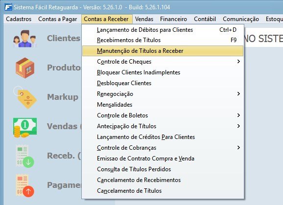 ENTRE EM MANUTENÇÃO DE TITULOS A RECEBER: