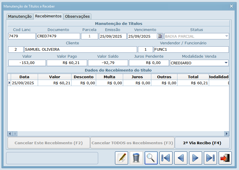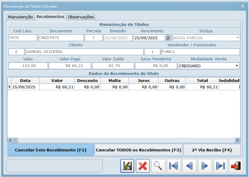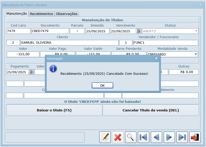 CLIQUE PARA EDITAR E EM CANCELAR ESTE RECEBIMENTO: